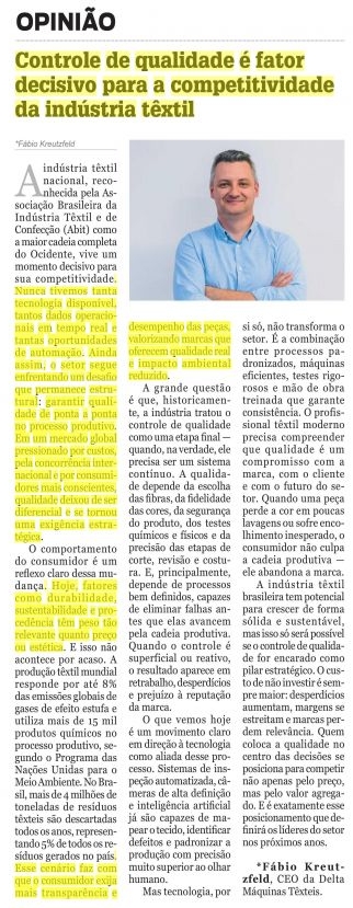 de Paulo nicação (EBC).*Fábio KreutzfeldAindústria têxtilnacional, reconhecida pela As